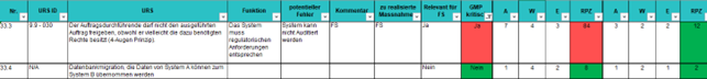 Auszug aus der RA – FMEA CSV: