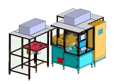 Bildlegende 2: Laminar Flow Box (LFB) und Ausschnitt einer FMCG-Anlage (Avor Rack A, Rüsten und Abfüllen Rack B)
