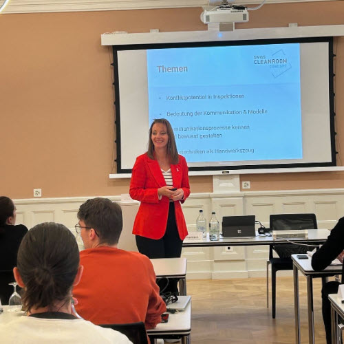 Frank Zimmermann von der Firma Swiss Cleanroom Concept GmbH begann das Seminar mit den Thema Begriffe und Definition eines Audits und einer Inspektion. Vor der zNünipause gab es noch den Leitfaden zu Audits und Inspektionen. Anschliessend übernahm Beatrice Tappenbeck; ebenfalls von Swiss Cleanroom Concept mit dem Referat über Psychologische Aspekte bei Audits und Inspektionen. In Gruppen wurden Themen wie Konfliktpotential zwischen Inspektoren / Auditoren und Inspizierten diskutiert.