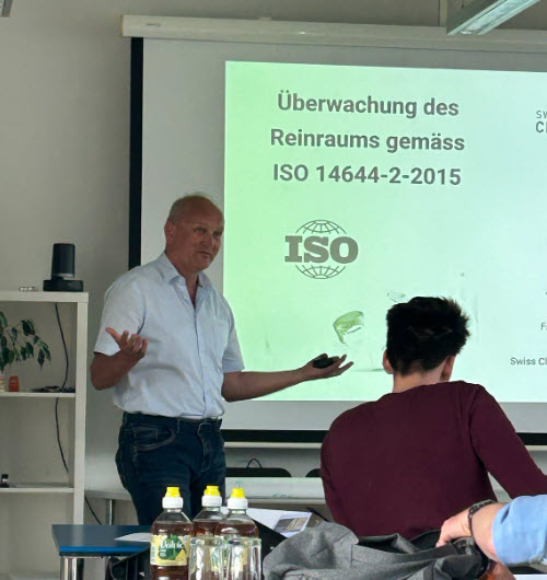 Am Mittwoch, 23. April 2025 fand in Wattwil bei der Firma Particle Measuring Systems AG das Seminar Reinraum Qualifizierung und Monitoring nach ISO 14644 statt. Christian Glosse von der Firma Particle Measuring Systems startete in den Seminartag mit dem Thema: Die Qualifizierung des Reinraumes gem. ISO 14644-1. Nach der zNünipause ging es weiter mit Aspekte der Reinraummessgeräte. Die Teilnehmer stellten viele interessante Fragen. Nach der wohlverdienten Mittagspause ging es an den praktischen Teil, wo die Teilnehmer Strömungsvisualisierungen, Luftgeschwindigkeit- und Partikelmessgeräte im Kalibrierlabor erleben durften. Ebenso auch Filterlecktest und Kalibrierung Druckanzeigen, Reinraumklassen-Bestimmung und Raumdifferenzdruckmessung waren vor Ort zu ergründen.