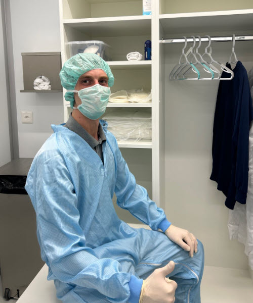 Danach führte Frank in die Themen Reinigungs- und Desinfektionstechniken für Reinräume sowie Dokumentation und Datenintegrität ein. Den Abschluss des Seminartages bildete ein praxisnaher Workshop in einem realen Reinraum bei der Firma avintos AG, wo uns Jérôme Chabloz; Geschäftsführer, herzlich willkommen hiess. Herzlichen Dank an die Avintos AG für die zur Verfügung gestellte Reinraum-Infrastruktur. Frank und Beatrice demonstrierten eindrucksvoll die korrekte Einschleusung, um Kontaminationen gezielt zu vermeiden. Die Teilnehmenden nahmen das vermittelte Wissen mit grossem Interesse und viel Freude auf.