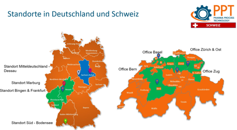 Jahrzehntelange Erfahrung im Bereich der pharmazeut-ischen Industrie machen uns zu Ihrem idealen Partner. Wir kombinieren Erfahrungen aus den Bereichen Dienst-leistung, Produktion, Quality und Engineering in einem Unternehmen. Wir liefern Ihnen somit die für Sie passenden Konzepte und Strategien unter Berücksichtigung von Kosten, Termin und Qualität. Mit den neuen Standorten in der Schweiz gehen wir den konsequenten Weg des Wachstums weiter. Mit mehr als 75 Ingenieuren und Experten in Deutschland und Schweiz stehen wir unseren Kunden für alle Arten von Aufgaben und Projekten im Bereich von Pharma- & Biotech, Quality & Compliance, als auch mit den PPT Experts zur Verfügung |