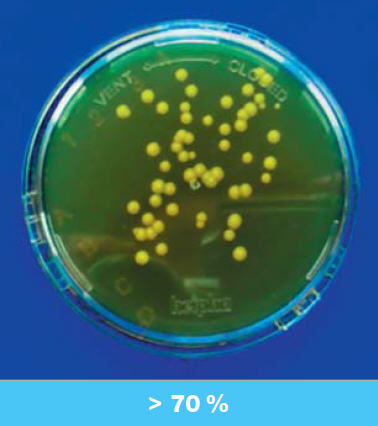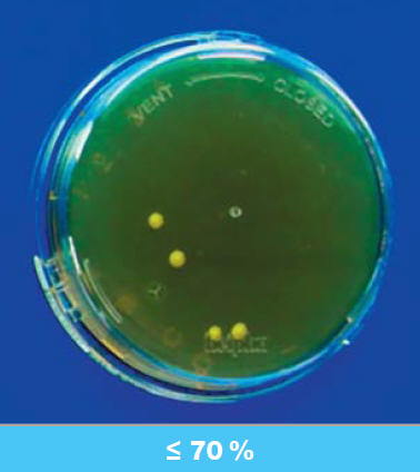 Wachstumskontrollen leisten Hilfestellungbei der Auswertung von unbewachsenenPlatten aus dem Hygienemonitoring.Sie bieten die Sicherheit,ein falsches negatives Ergebnis auszuschließen und gewährleisten damiteine Überprüfung der Funktionalitätdes verwendeten Agars und des darin enthaltenen Enthemmers. Geradein sensiblen Bereichen, in denen die Keimbelastung möglichst gering gehalten werden soll und ein Ergebnis mit KBE = 0 zu erwarten ist, ist es wichtig,die gewonnenen Resultate mit Hilfe von Wachstumskontrollen zu bestätigen. Weiterhin können dadurch Fehlerbei der Probenahme ausgeschlossen werden.